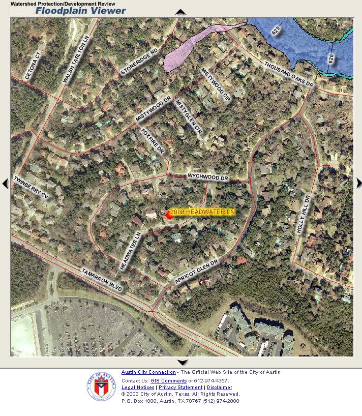 Lot Description The lot has a moderate slope in both front and back yards, with level areas in both yards. Back yard is fenced. Behind the garage is a Boat/RV pad and baskeball hoop. A topographical map is provided below, along with floodplain information from the City of Austin. According to the city, this property is NOT in the floodplain. Physical Description 2008 Headwater is a freshly redone Mediterranean. Conveniently located just north of Barton Creek Mall, it offers Hill Country views, even a little city view from deck and bedroom. Ready for move-in, it has fresh paint, carpet, ceramic tile and decking & flatwork. You get glorious high ceilings in formal living and dining and a warm family room off breakfast and kitchen. The master is on the first floor. It has a spacious bath with his and her vanities. The upstairs bedrooms are delightfully separated. Upstairs also is a huge game room/office with deck access & view. The owners are maintaining an AHS Warranty. The game room has large closets and can be used as a fifth bedroom or office. Schools Public schools are all within walking distance, all in the highly acclaimed Eanes School District (EISD). The closest,. about a half mile away, is Cedar Creek Elementary, which is adjacent to Hill Country Middle School. About a half mile further is Westlake High School. Current Occupants 2008 Headwater is currently being cared for by professional home managers, who can move out with 30 days notice. Financial Considerations The owners will consider carrying a second lien. Asking price is $599,900. 2010 taxes were $12,892. |