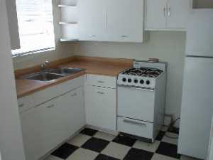 Downstairs has wall heat and efficient window units, and standard water heater Shown is downstairs kitchen |
