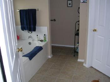 Double sink Separate shower Large walk-in closet Ceramic tile flooring |