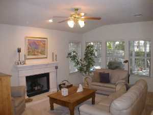 This room is naturally lit by a wall of windows with a view of the deck Five ceiling fans keep you comfortable and help keep utility bills extraordinarily low Classy fireplace has gas logs surrounded by a lovely hearth and mantle |