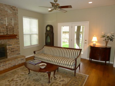 opens through French doors to covered porch |
