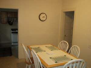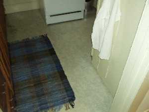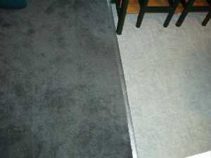 Right photo is dining room vinyl floor and living room carpet, all nicely done