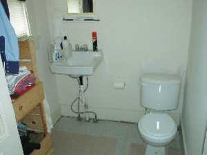 Right photo is 1/2 bath, appears to be part of an addition many years ago