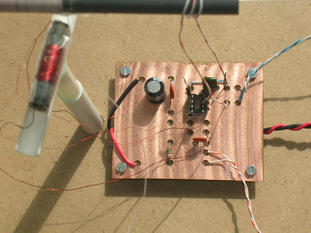 | Transistor and diode mounted in IC socket | Drive pulleys and cable | Schematic
